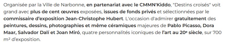 Exposition « Destins croisés » Narbonne le 01 août 2025